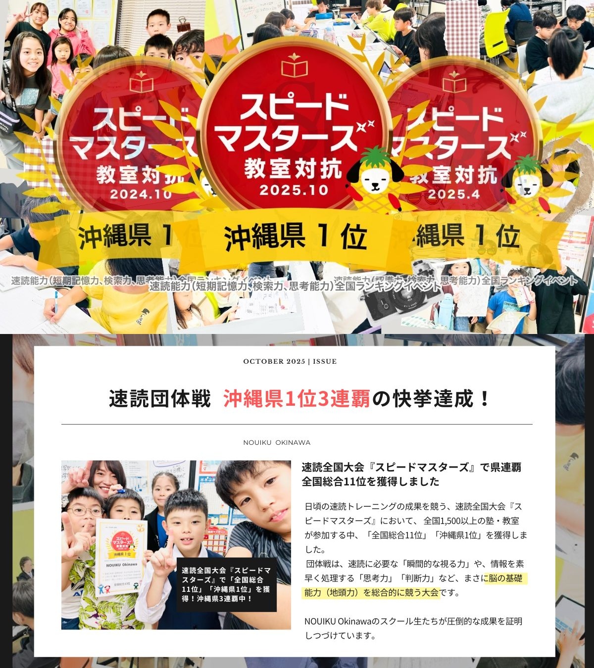 速読全国大会「沖縄県1位」3連覇達成!