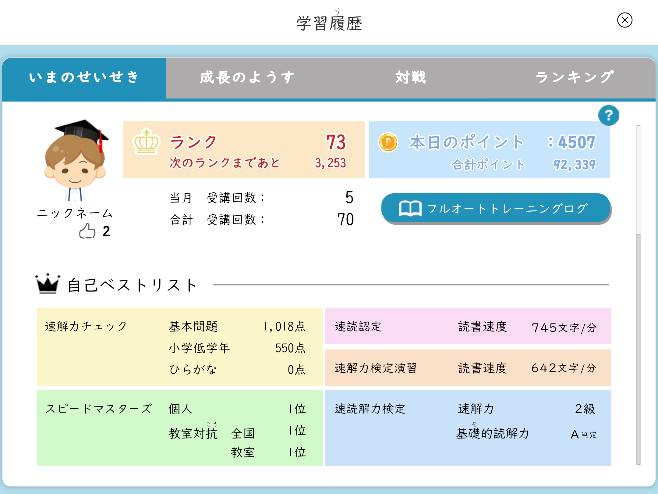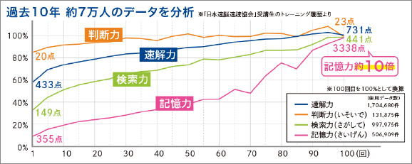 ただし、脳の認知機能を鍛えるトレーニングのため、成長カーブは本当に人それぞれです。一概にお約束できるものではありません。