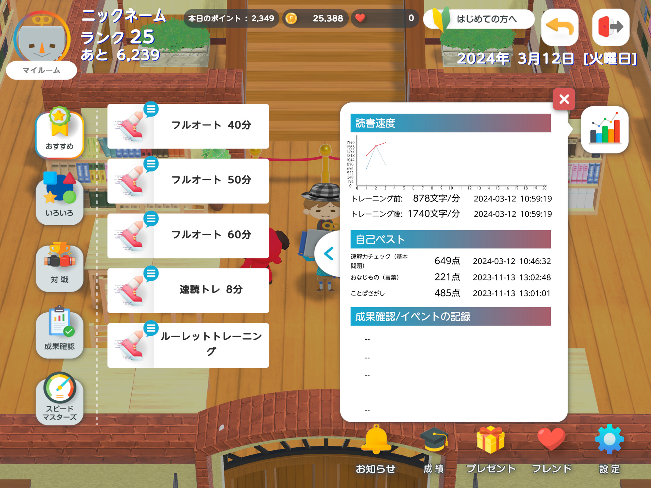 速読トレーニングでは、世代平均の読書速度1.5倍~3倍を目指します。