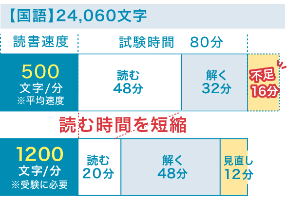 当然ながら、読解の処理能力が速いほど試験時間を有効的に使うことができ、精神的にも落ち着ついて、実力を発揮することができます💡